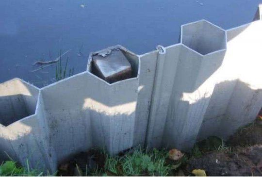 С течением времени происходит размывание грунта, земляная дамба оседает вниз, «растекаясь» по дну. Чтобы этого не происходило, стенки сооружения укрепляют. Оптимальный способ укрепления – тоже шпунты: металлические, в некоторых случаях ПВХ или композитные.